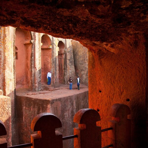 Fly to Lalibela, often called the “Eighth Wonder of the World.” Visit the first cluster of rock-hewn churches, including Bete Medhane Alem, Bete Maryam, and Bete Golgotha, carved from solid volcanic rock in the 12th century.